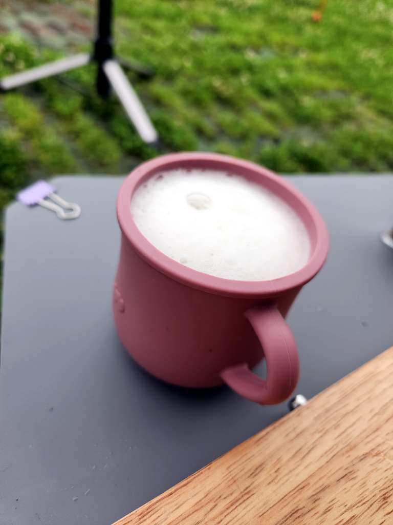 도착해서 텐트 치고...얼마 전에 알리에서 오배송된... 꼬맹이용 컵에 맥주 한잔..