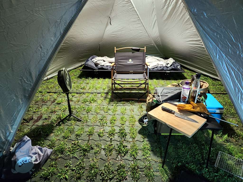 일부러 바닥이 없는 쉘터, 타프 같은 것을 사용합니다.