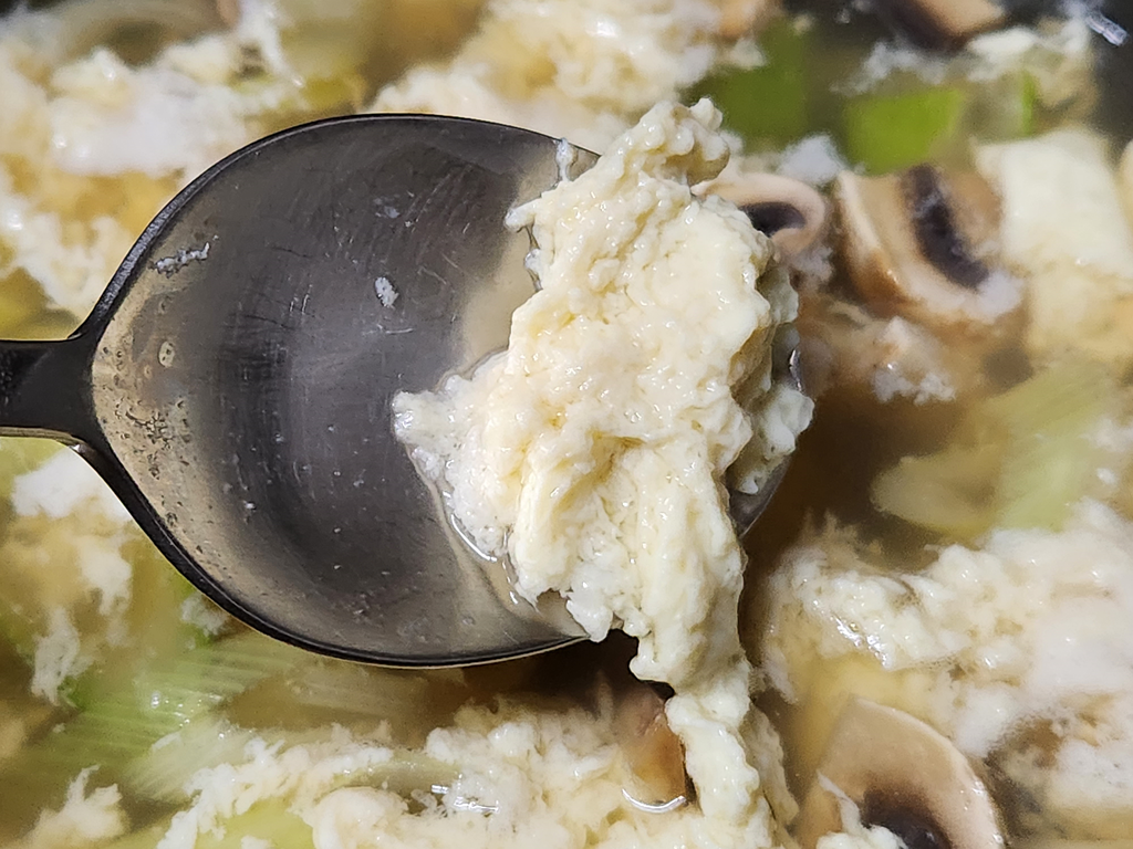 우리가 계란을 깨서 수저로 섞으면 약간의 점성과 표면 장력이라고 해야하나요? 그 뭉치는 특성이 있지요.