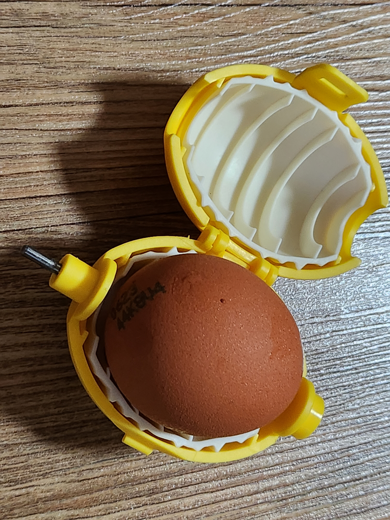 가운데를 열어서 소중한 닭알을 하나 넣고요.. 흰색 부분은 실리콘 같은 재질이라 부드럽게 잡아줍니다.