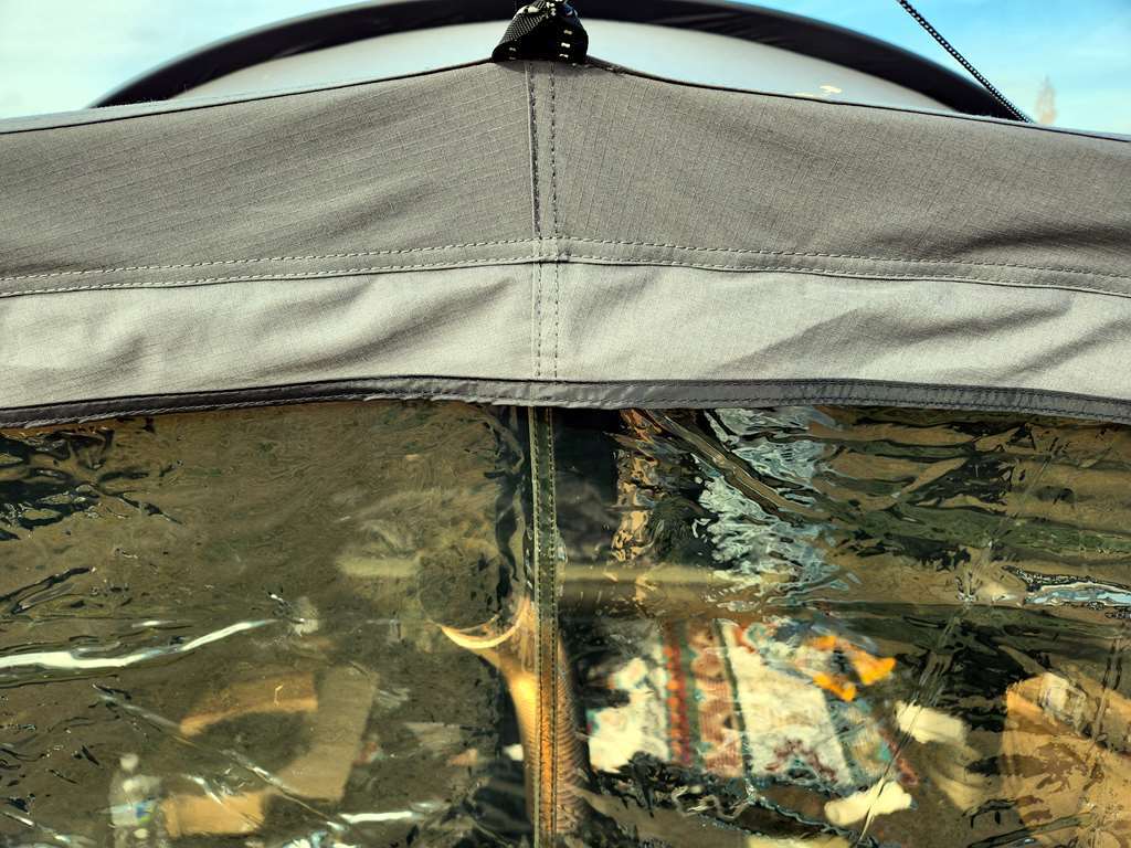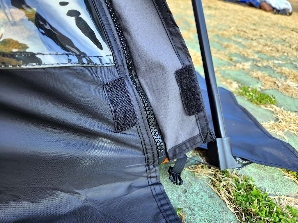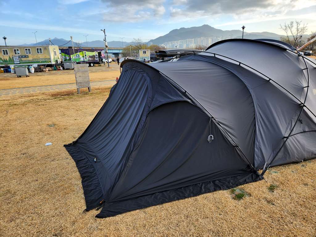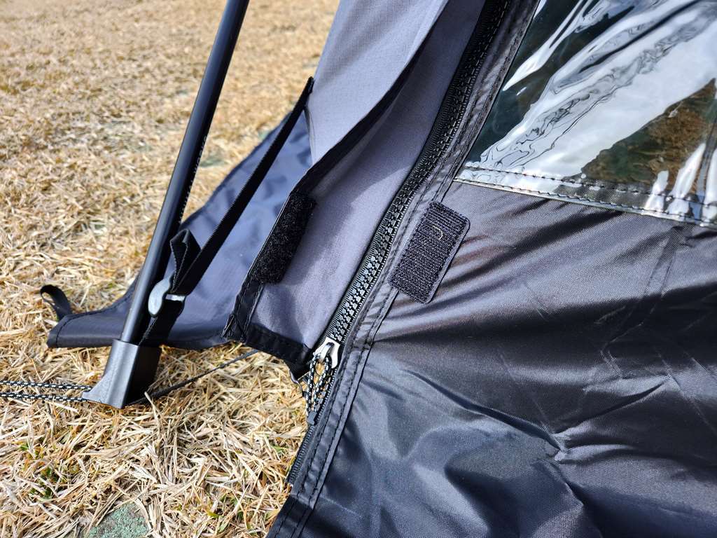 더구나 쉘터GH가 너무 두꺼운 면 재질이라 사실 암막 커튼 수준입니다. 밤에 안에서 라이트를 켜도 밖에서 구분이 안 됩니다.
