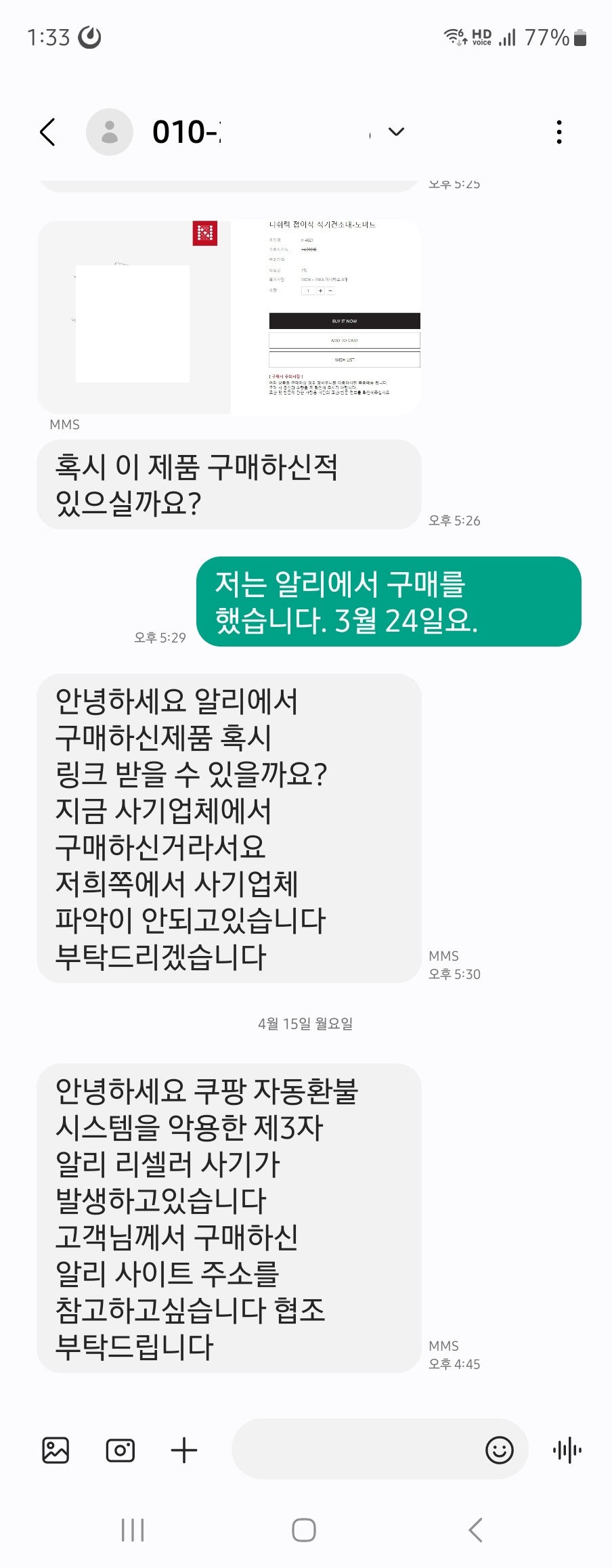 저는 물건을 받았고, 알리 판매자는 구매 비용을 다시 되돌려 받았지만 실제 물건을 판매한 쿠팡 업체는 비용을 받지 못한 상태가 되는거죠.
