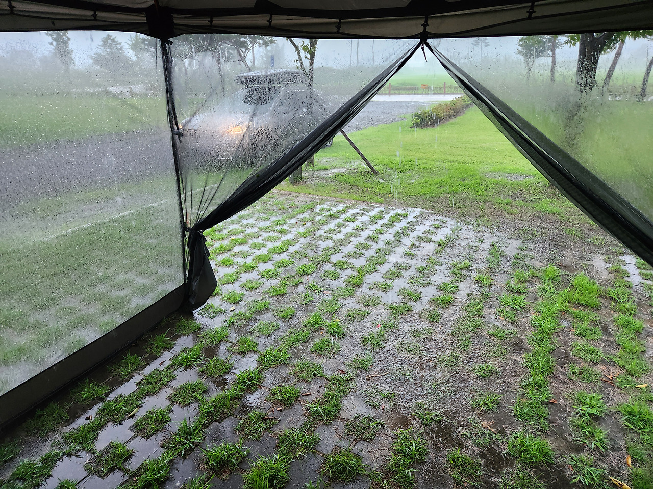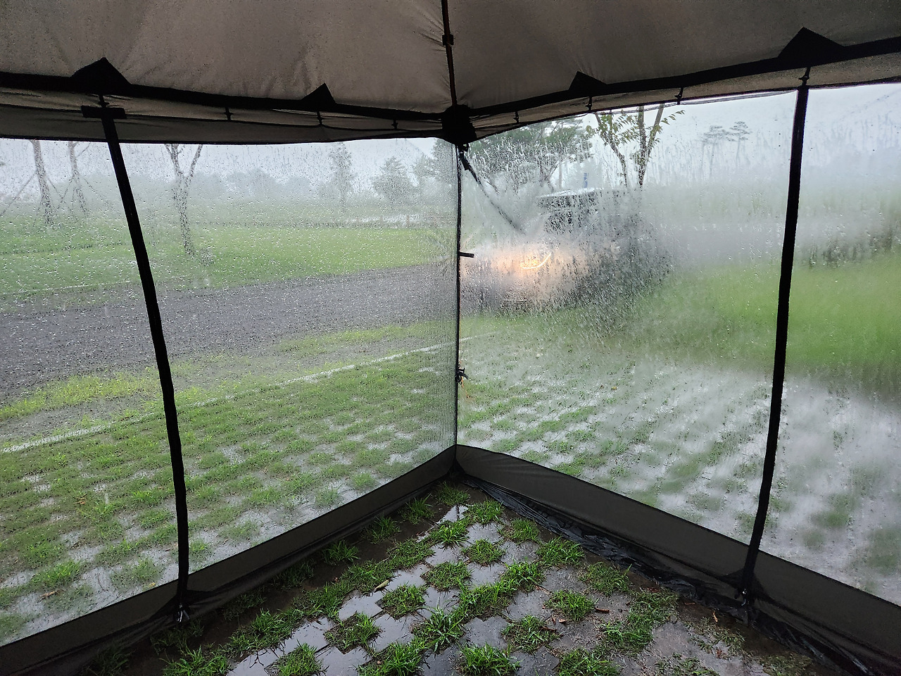 사진으로는 이 바람과 폭우가 표현이 안되네요.