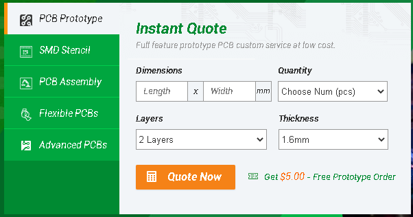 홈페이지에서 첫 화면에 보이는 PCB Prototype 의 Quote Now 를 클릭합니다.