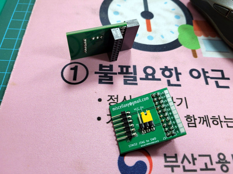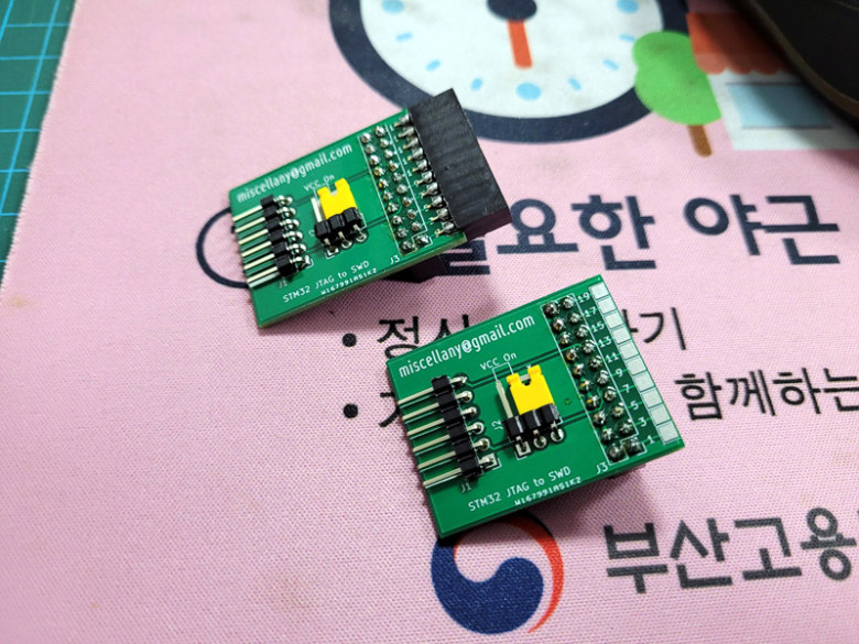 저는 STM32 라는 개발툴의 장비에 작은 젠더 보드를 하나 만들었습니다.