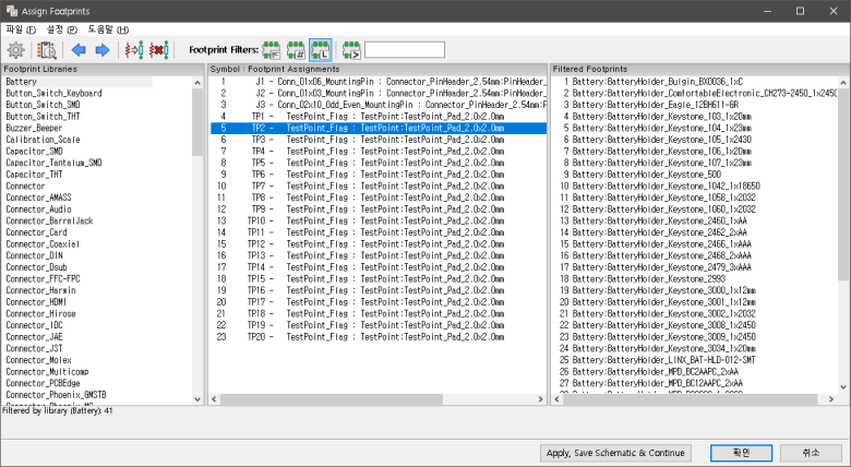 2. 회로도의 부품을 PCB 에 사용될 실제 부품들 또는 부품들 크기와 맞추는 작업을 합니다.