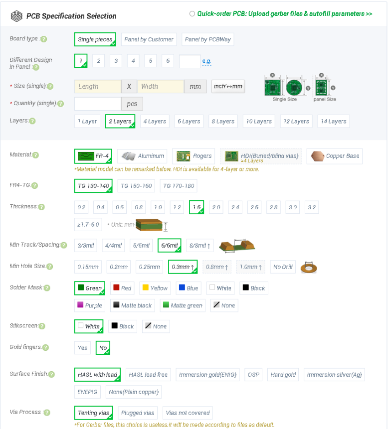 7. 기본 PCB 제작 정보를 입력하면 되는데, 회색 바탕 부분만 입력을 하시면 됩니다.