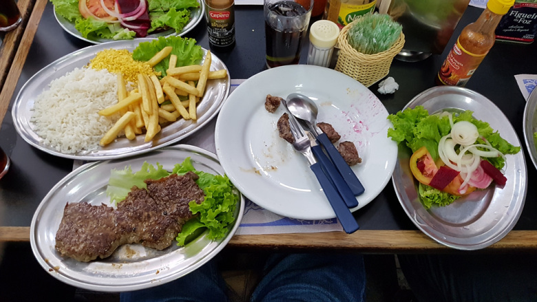 음식은 훨씬 쌉니다. 30헤알 (9천원 정도) 하는 로컬 음식점의 스테이크 입니다. 우리 기준으로는 2인분 짜리입니다.