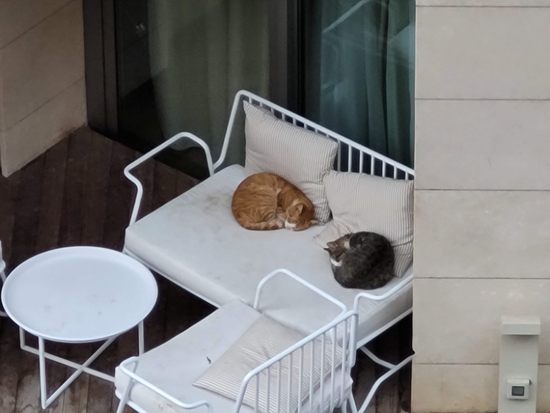 호텔 레스토랑에 고양이가 어슬렁 다녀도 아무도 내쫓거나 건들지를 않습니다.