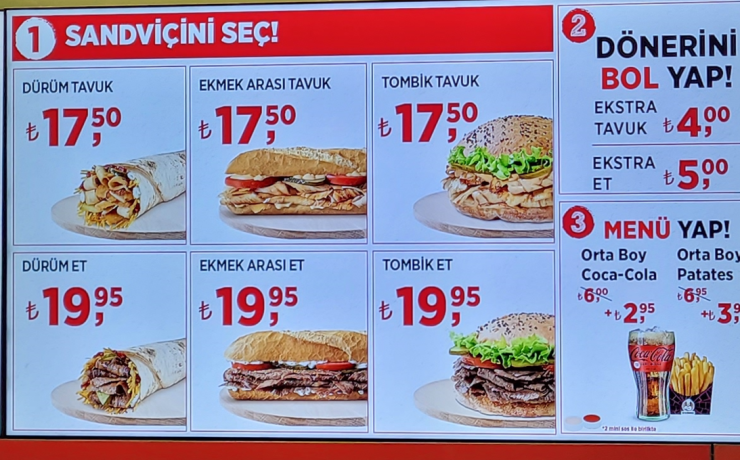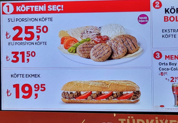 일반 싼 음식점들은 30리라 정도( 약 4000원 ).. 좀 비싸다 하면 60리라 ( 약 8000원 ) 정도.