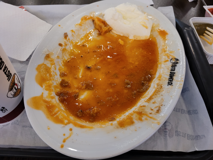 한 입만 먹었는데 한참 동안 남아있는 고기의 누린 맛.. 그냥 콩만으로 배를 채웠네요.