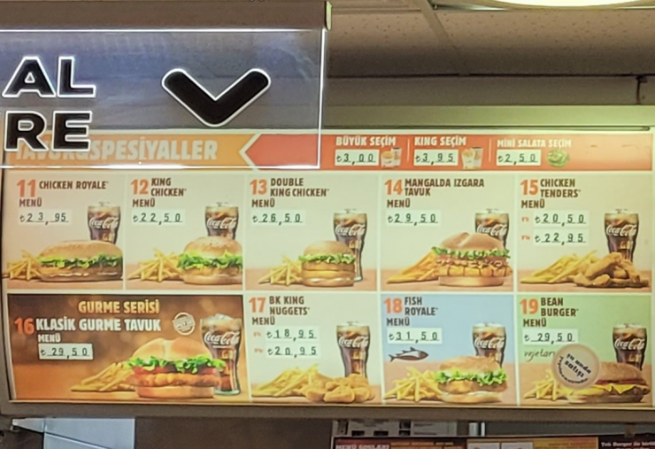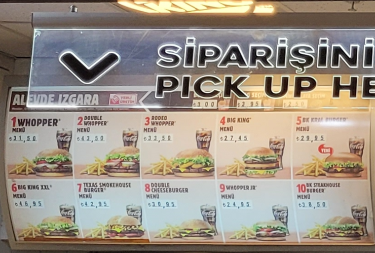 와퍼 세트가 32리라, 약 4000원 정도입니다.