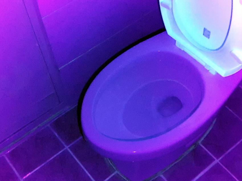 자외선 조명을 찍기 위해 불을 끈 상태고, 좌변기의 도기 재질이 반사되어 잘 찍히지도 않더군요.